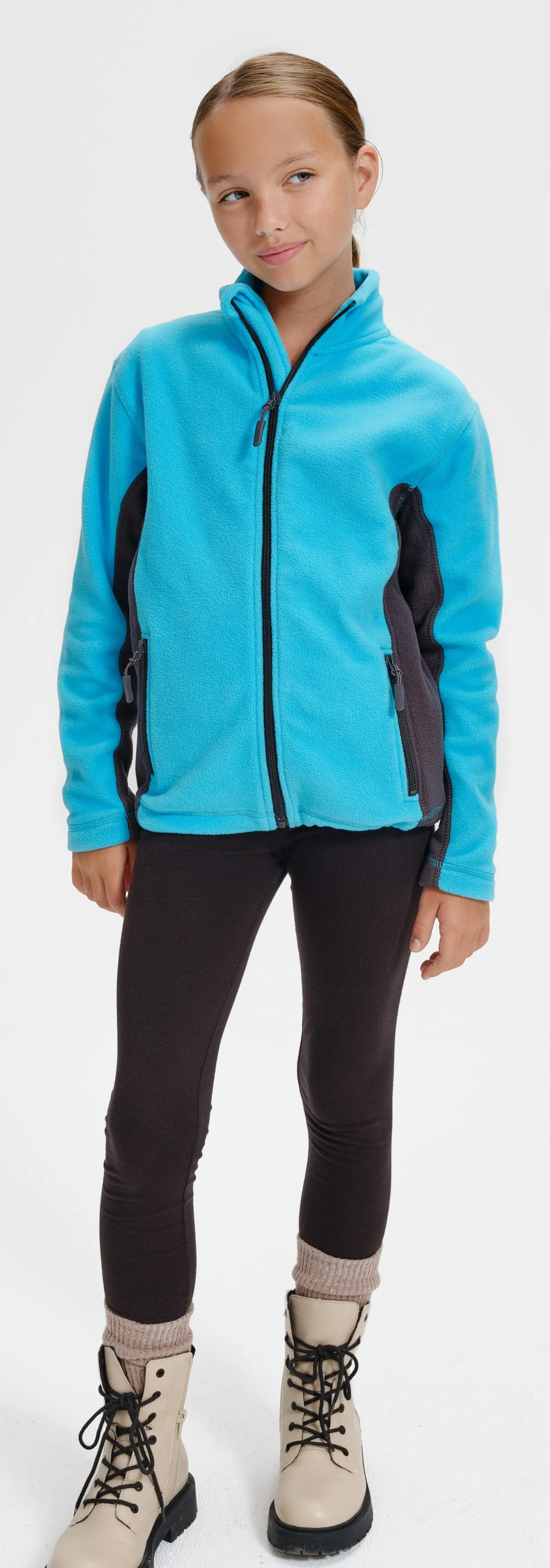 - Lasten fleecetakki, jossa on kontrastivärisiä elementtejä