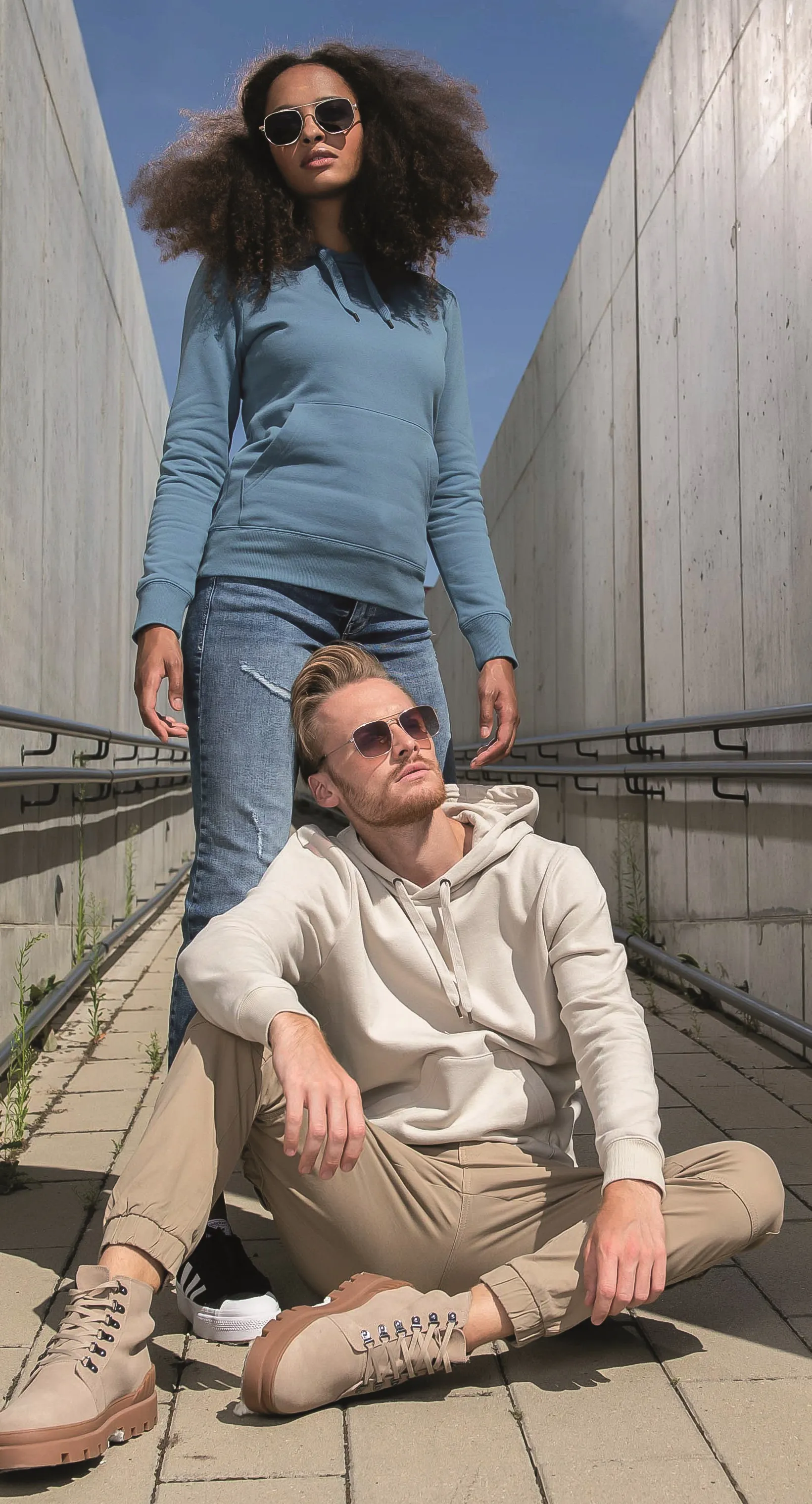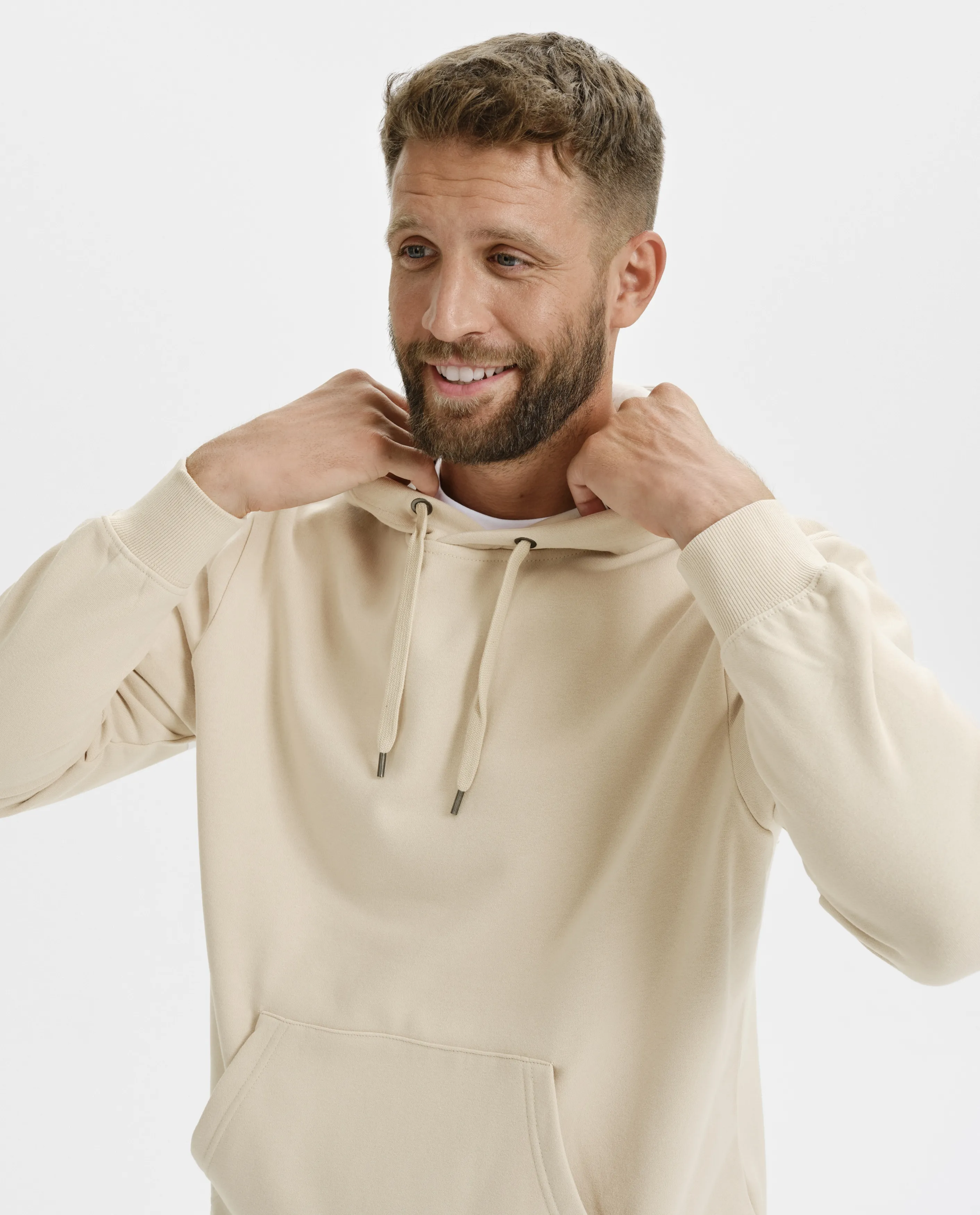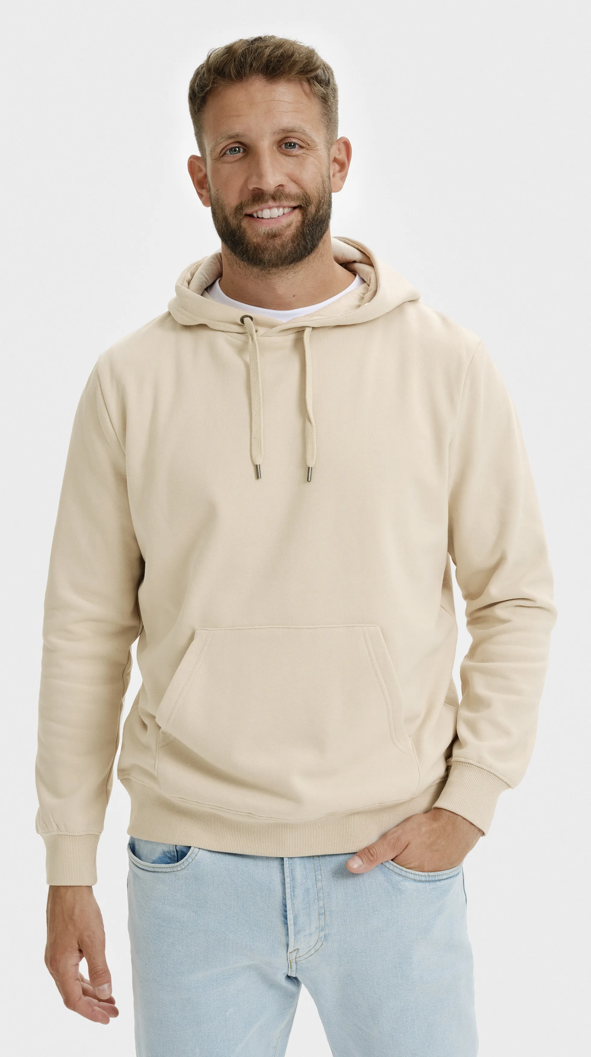 Mukava miesten pusero pään päällä, tasku edessä, huppu, ilman vetoketjua.