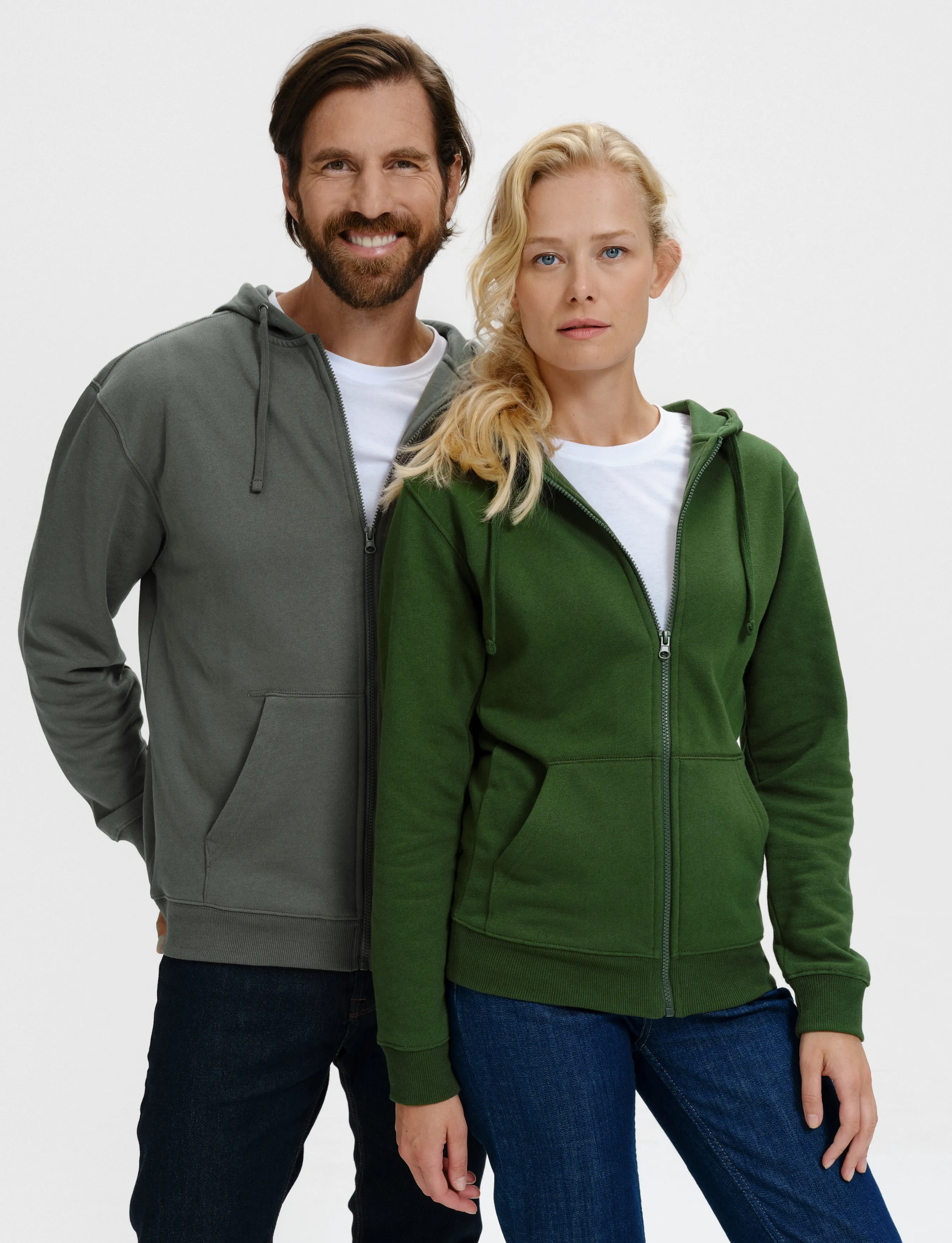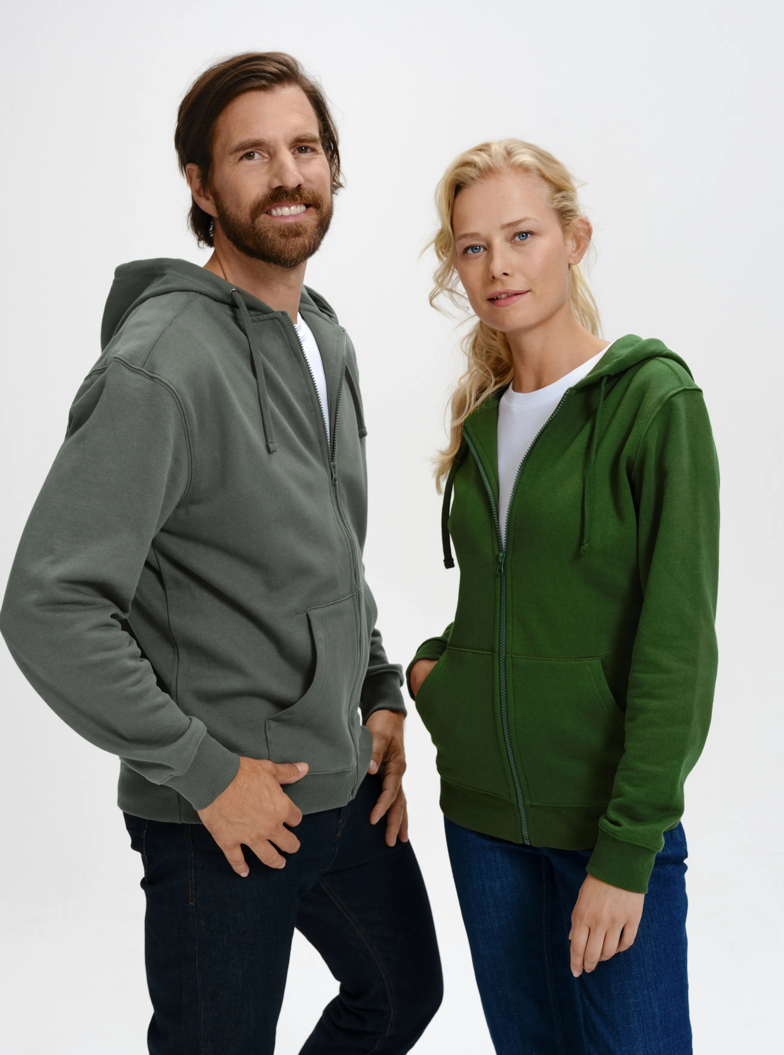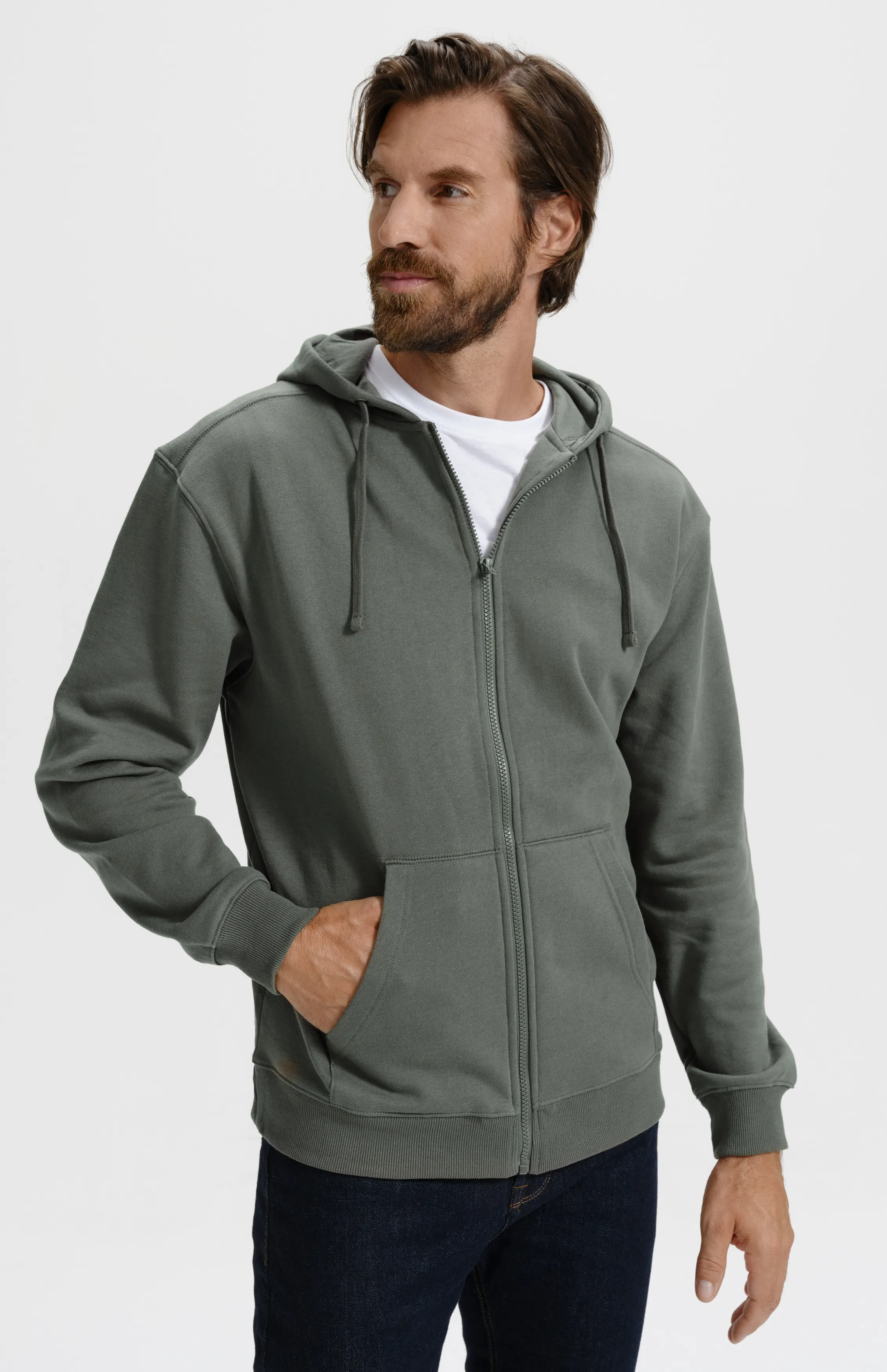Miesten huppari ja vetoketju, jossa kengurutyyliset taskut edessä.