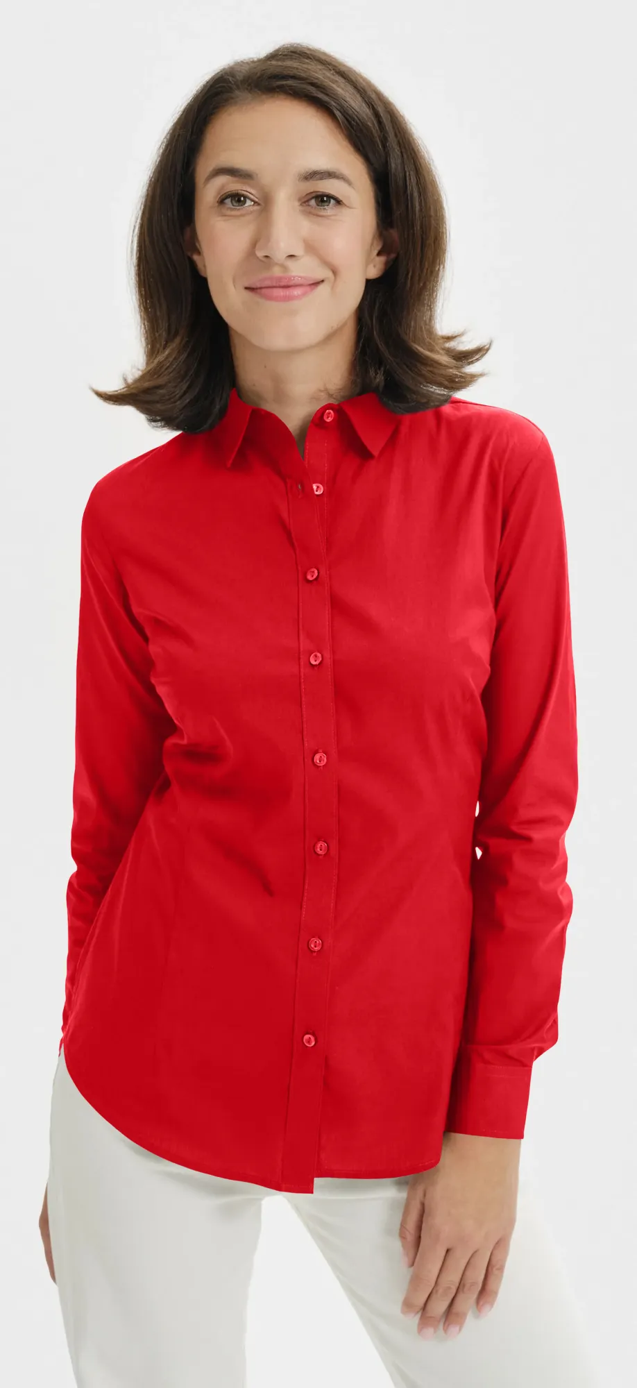 Naisten puuvillapusero, jossa pitkät hihat, punainen, L