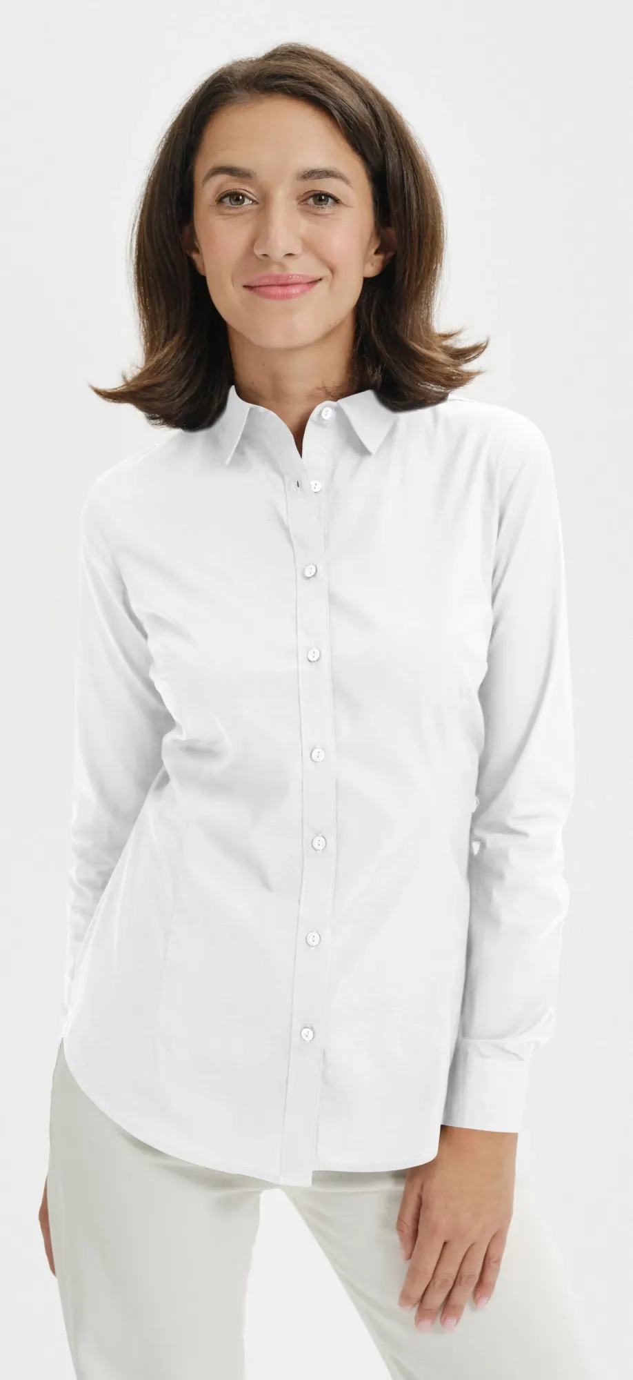 Naisten puuvillapusero, jossa pitkät hihat, valkoinen, 2XL