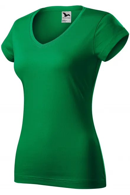 Naisten slim fit t-paita, jossa V-pääntie, ruohonvihreä, XS