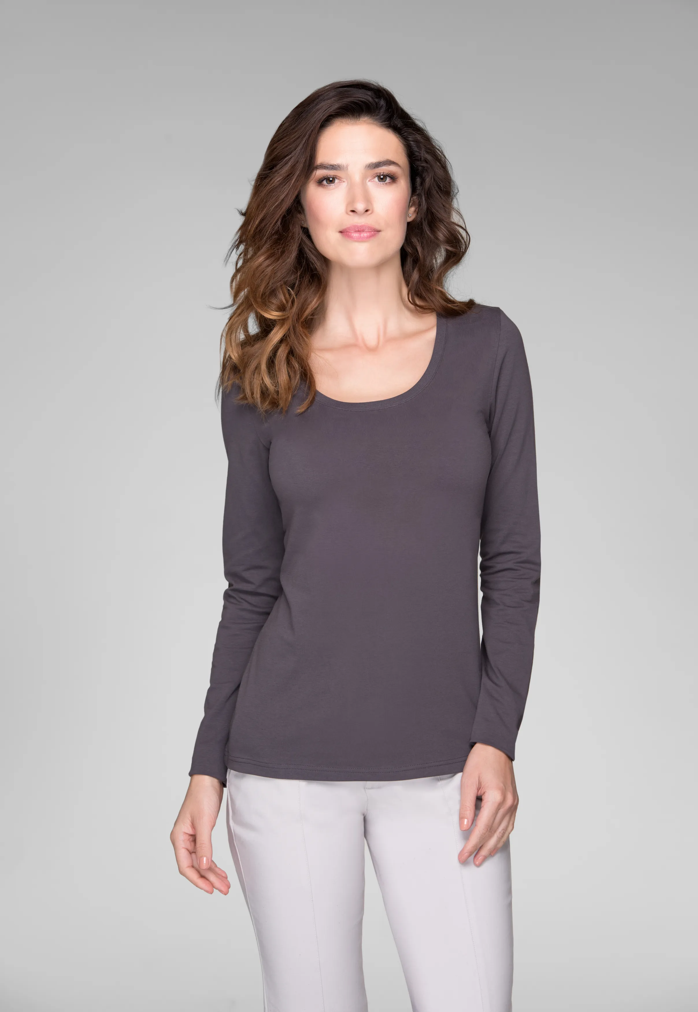 Jos etsit tyylikästä naisten pitkähihaista puuvillaista T-paitaa jokaiseen päivään, olet juuri löytänyt sen. Pitkähihainen T-paita, jossa on syvä pääntie, sopii ympärivuotiseen käyttöön töihin, kouluun, kotiin tai kävelylle. Yksinkertaisesti aina ja kaikkialla.